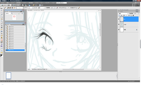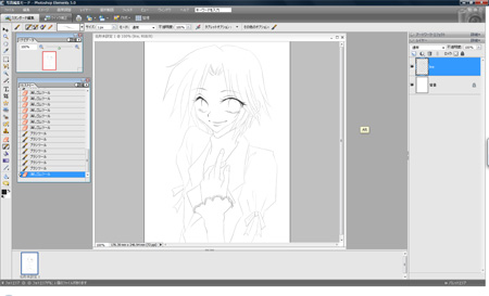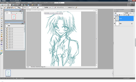 下書きの上に新たなレイヤーを追加し、線入れてます。