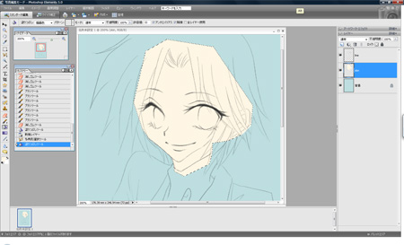 で、色塗り。パーツ毎にレイヤー分けしています。