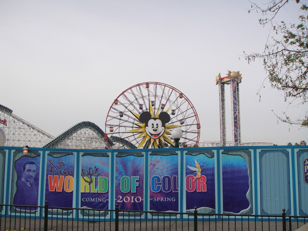 手前のフェンスは、夜のショーの開発中のための囲い。ファンタズミック、終わっちゃったのねん。次はこのWorld of Colorっていうショーになるんですって。